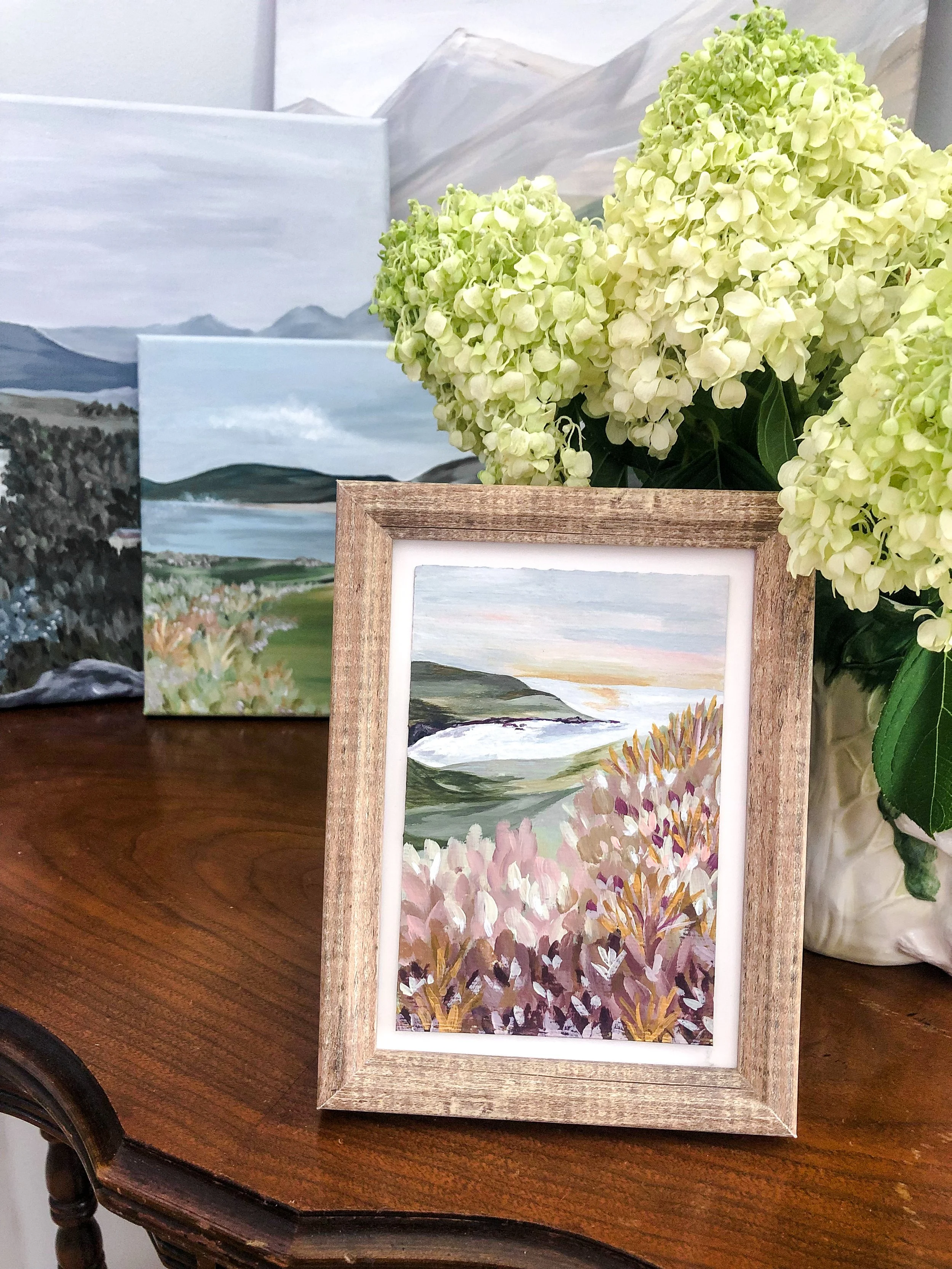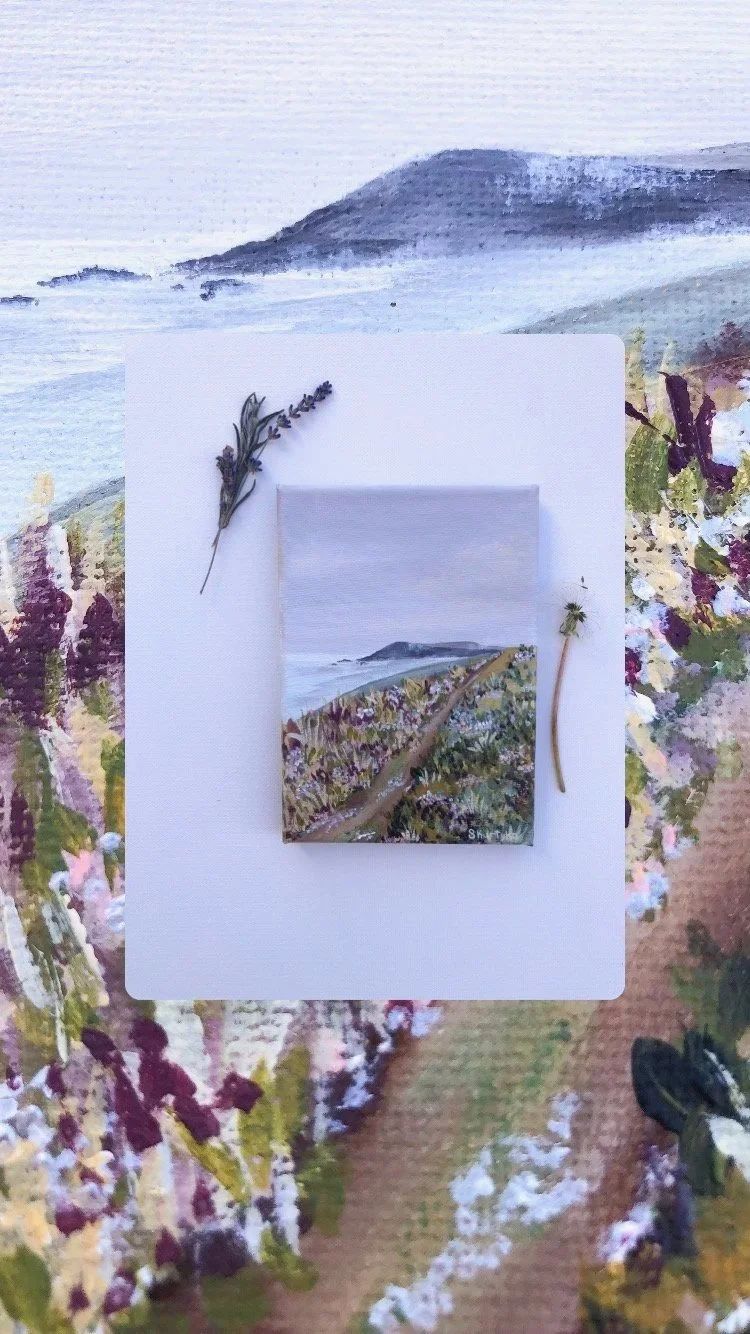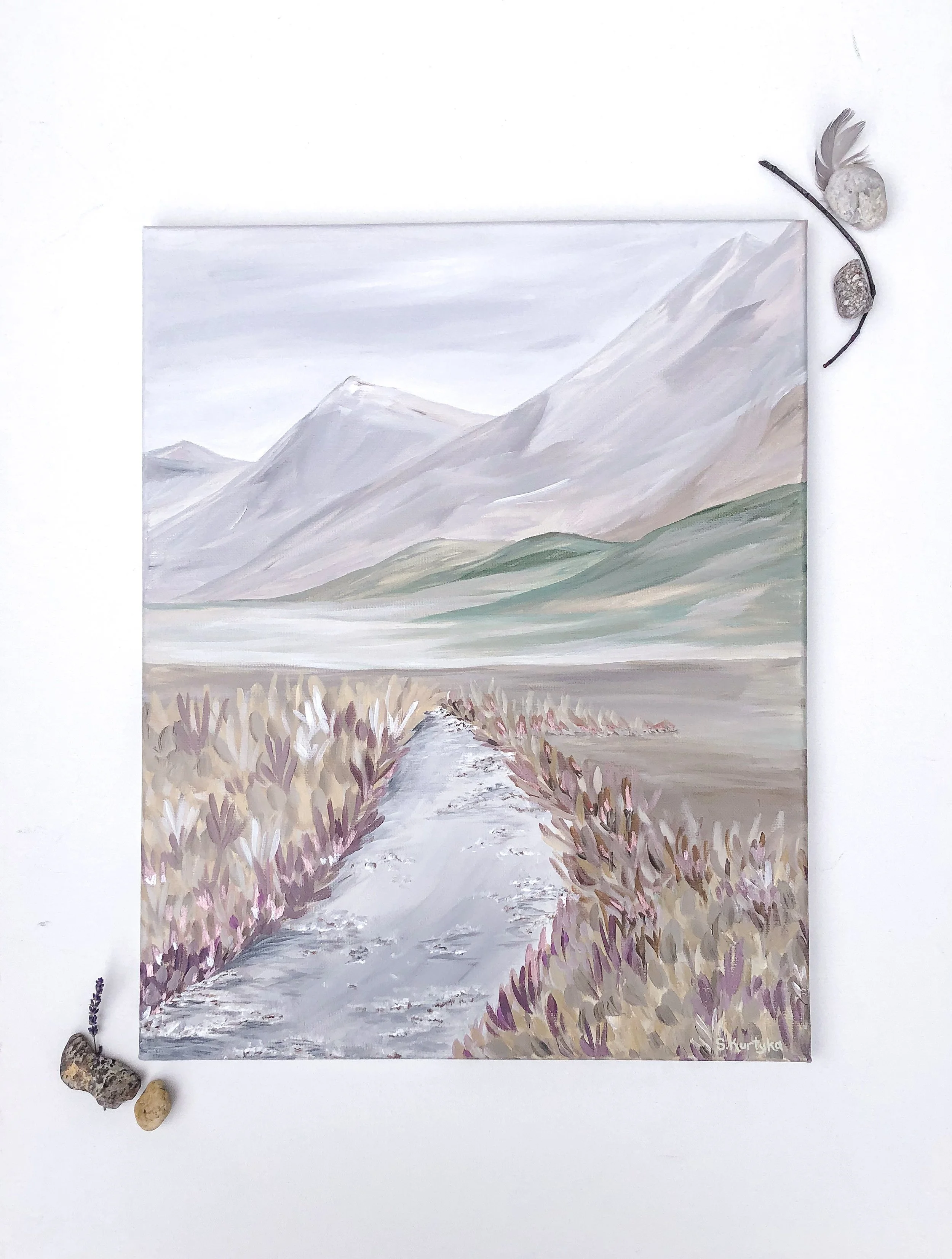Stephanie is an acrylic landscape painter, creating art that brings peace and joy to her life. Her landscape paintings are a mix of real and imagined places, inspired by the travels and literary interests that have touched her soul. She hopes these pieces offer you an invitation to pause, breathe, and appreciate the beauty that exists in both the grand and the ordinary!